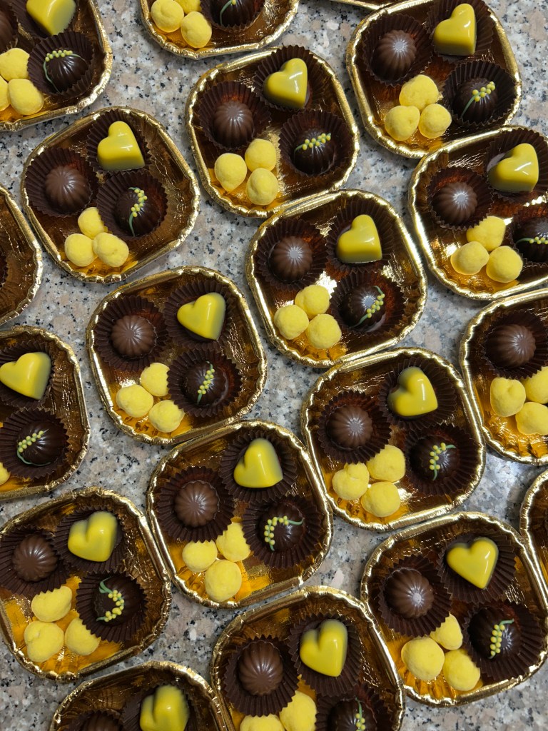 Assortimento di cioccolatini artigianali decorati a mano