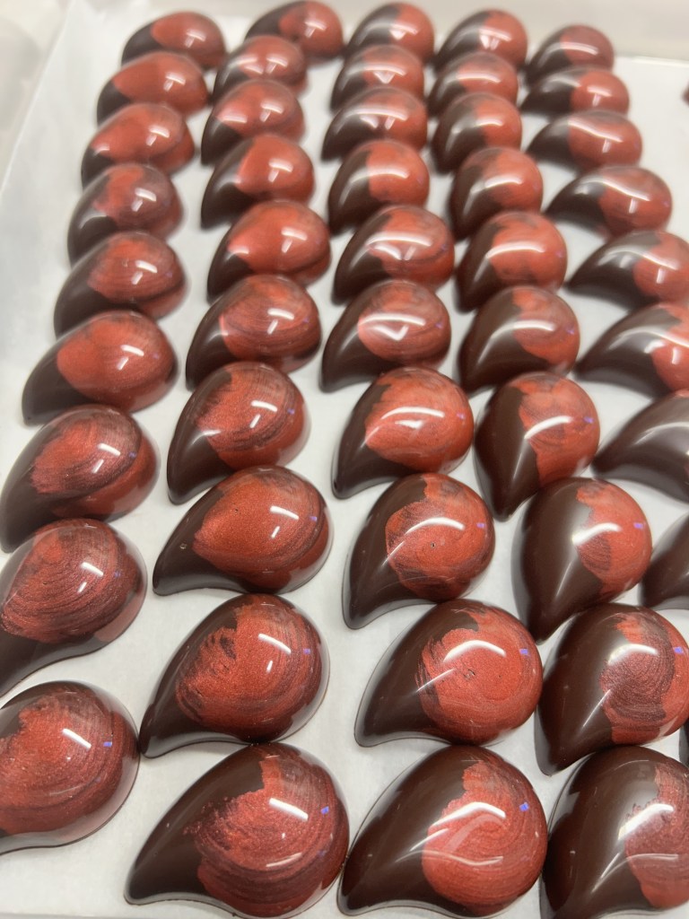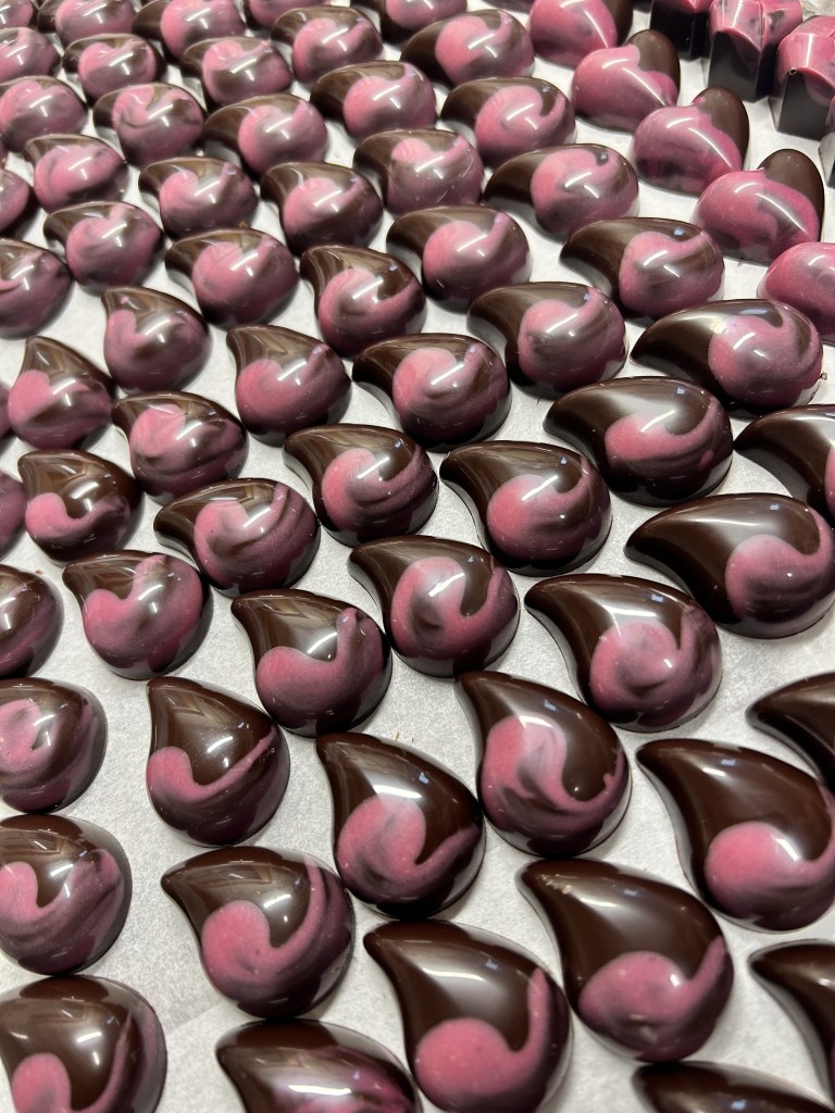il colore del tramonto sulle Dolomiti incontra il cioccolato Ruby dando origine a queste tavolette dal gusto fruttato e acidulo